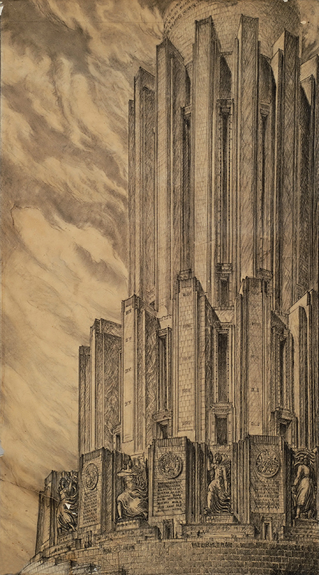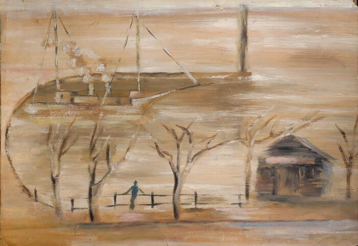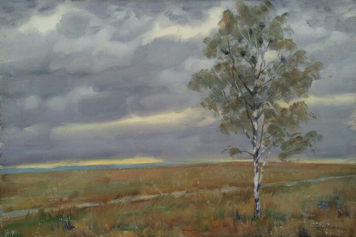 Эскиз декорации к спектаклю по пьесе В.А.Катаняна «Они знали Маяковского» в постановке Академического театра драмы им. А.С.Пушкина, Ленинград. 1954 Фанера, масло. 34,5×55