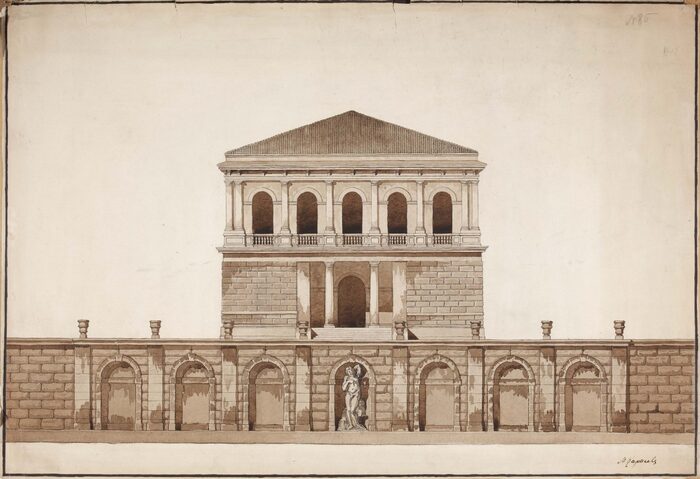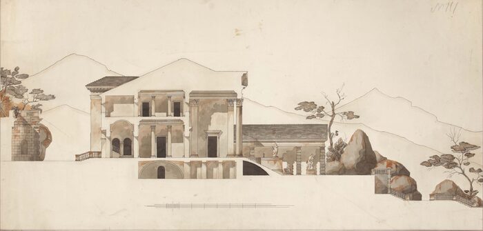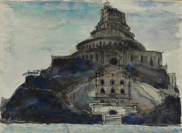 Проект берегового устоя Бородинского моста в Москве. Эскиз офорта. 1911 Бумага, уголь, пастель, графитный карандаш. 99,5×75,5 (51,5×88,5)